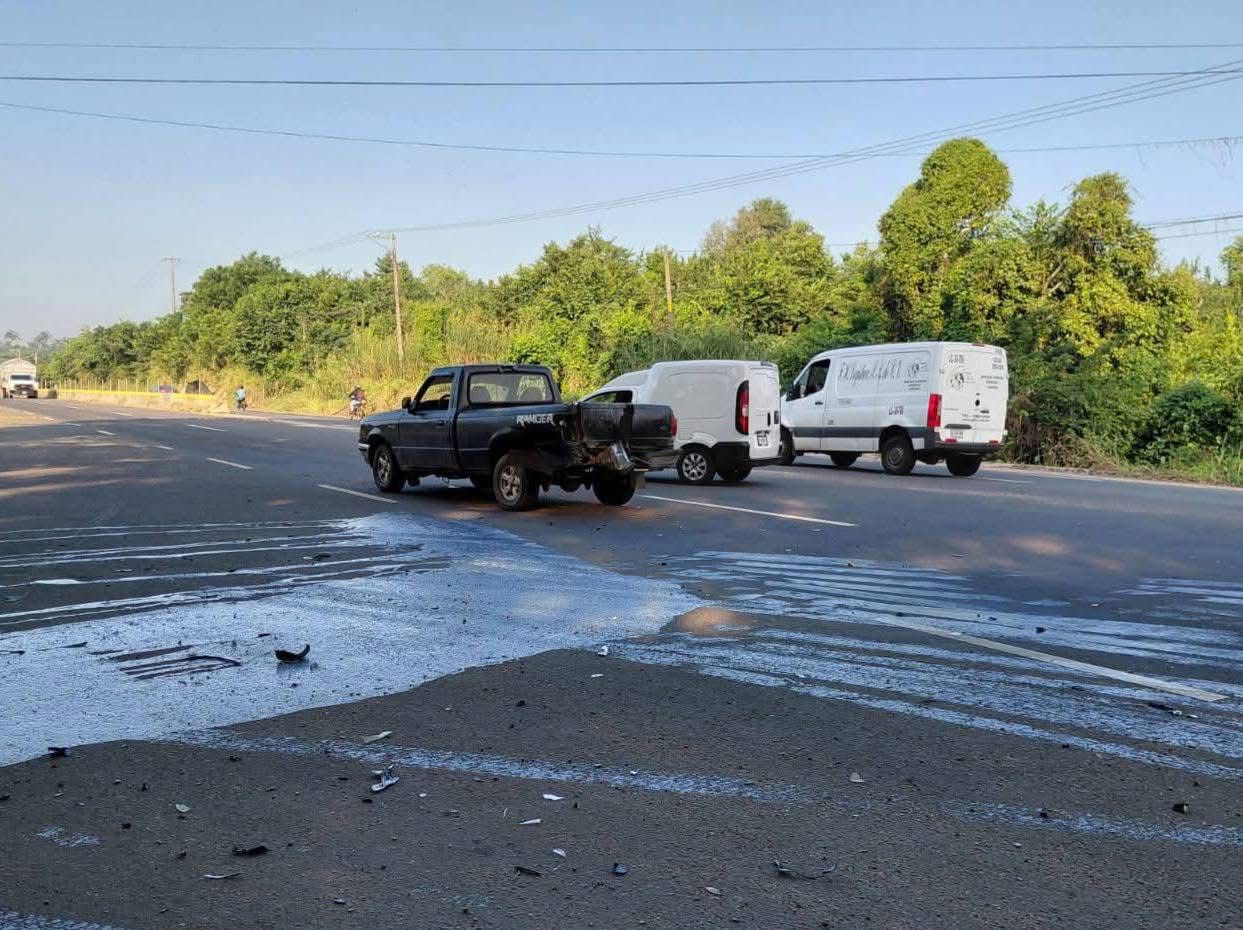 De acuerdo con la información preliminar, una camioneta Ford Ranger de color negro, utilizada para el traslado de productos lácteos, habría efectuado una maniobra repentina que terminó por generar un choque. Un automóvil Chevrolet azul, que circulaba metros atrás, no logró frenar a tiempo e impactó la parte trasera de la camioneta.
