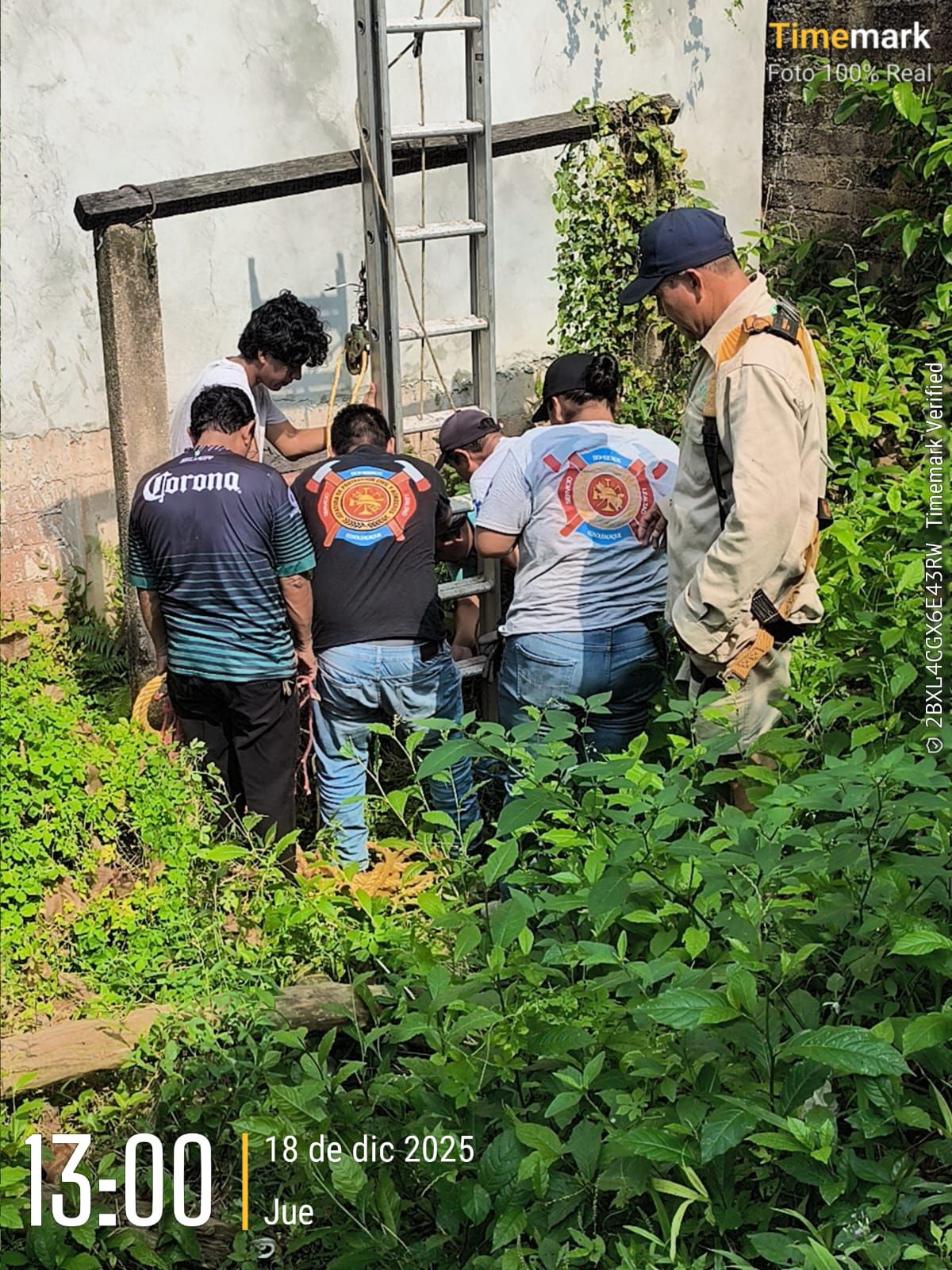 Con apoyo de su equipo, una escalera, cuerdas y las medidas de seguridad adecuadas, Blanco Virgen supervisó el rescate dentro del pozo para sacar al cuadrúpedo , destacando la rápida respuesta y el trabajo coordinado que permitió que el perrito saliera con vida.
