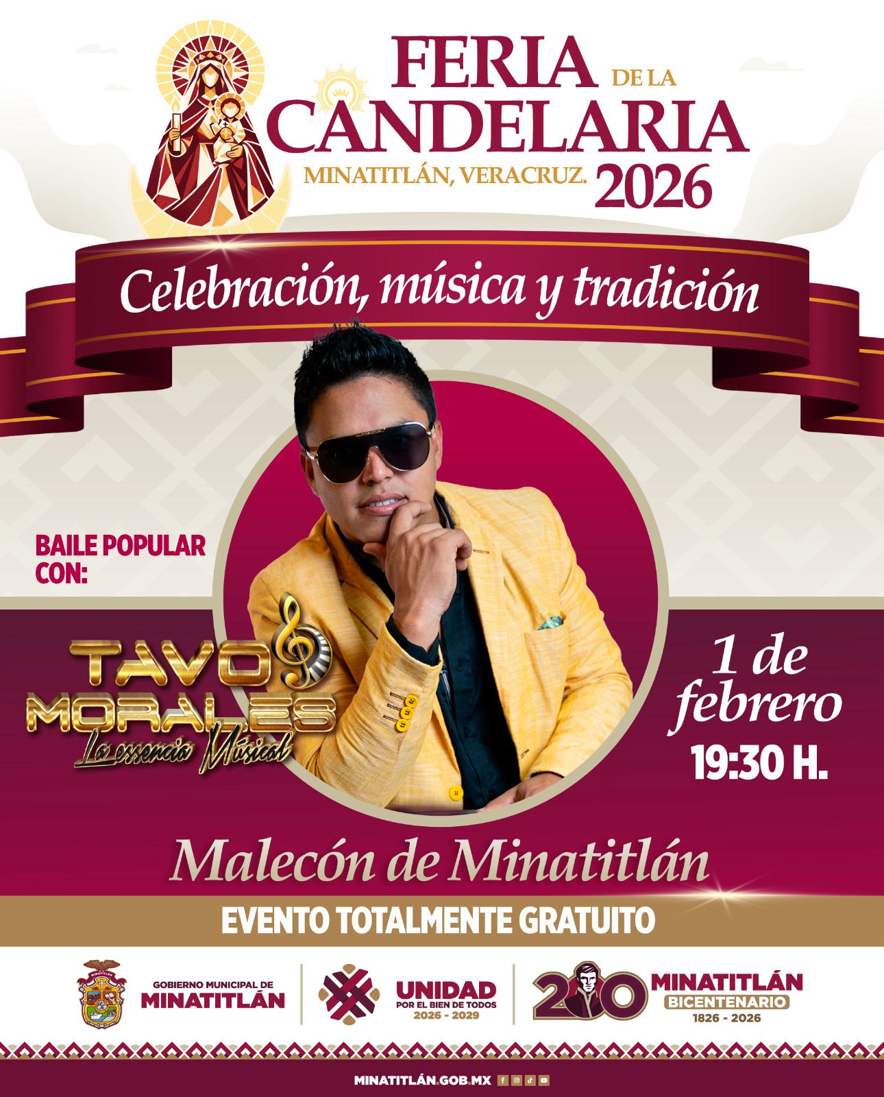 El Gobierno de Minatitlán invita a la celebración de la Feria de la Candelaria 2026 , los esperamos para disfrutar de una noche de alegría y ritmo.
